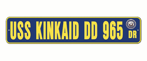 USS KINKADE DD 965 Aluminum Street Sign Navy Blue / Yellow 6" x 30" Military USN SS002
