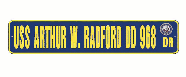 USS ARTHUR W RADFORD DD 968 Aluminum Street Sign Navy Blue / Yellow 6" x 30" Military USN SS002