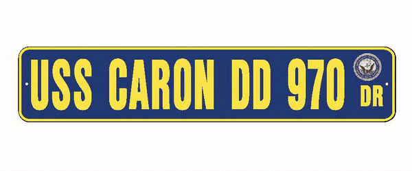 USS CARON DD 970 Aluminum Street Sign Navy Blue / Yellow 6" x 30" Military USN SS002