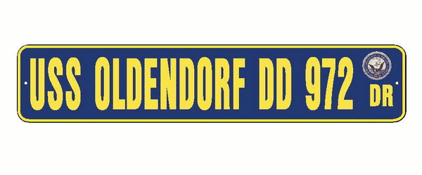 USS OLDENDORF DD 972 Aluminum Street Sign Navy Blue / Yellow 6" x 30" Military USN SS002