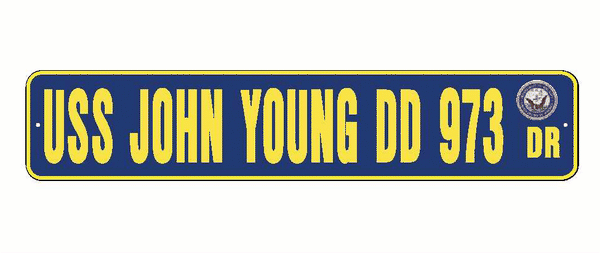 USS JOHN YOUNG DD 973 Aluminum Street Sign Navy Blue / Yellow 6" x 30" Military USN SS002