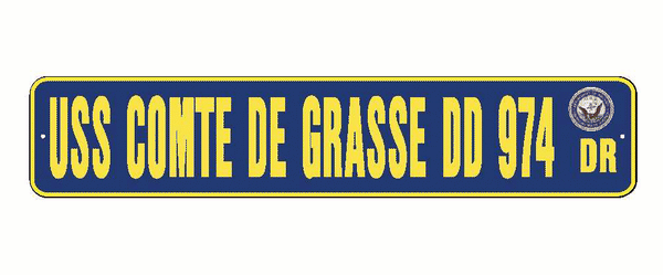USS COMTE DE GRASSE DD 974 Aluminum Street Sign Navy Blue / Yellow 6" x 30" Military USN SS002
