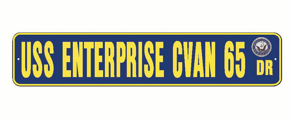 USS ENTERPRISE CVAN 65 Aluminum Street Sign Navy Blue / Yellow 6" x 30" Military USN SS002