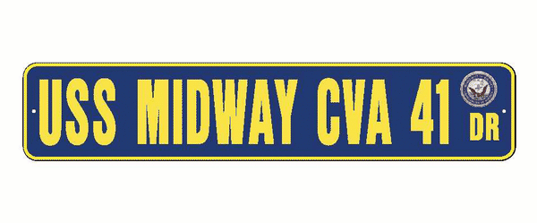 USS MIDWAY CVA 41 Aluminum Street Sign Navy Blue / Yellow 6" x 30" Military USN SS002