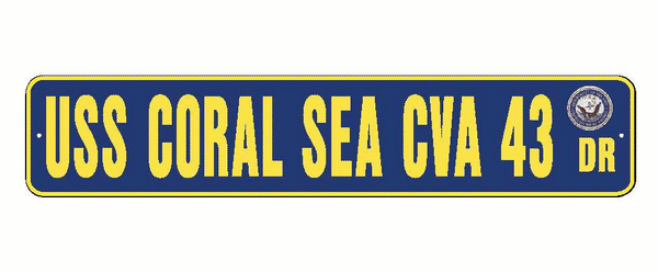 USS CORAL SEA CVA 43 Aluminum Street Sign Navy Blue / Yellow 6" x 30" Military USN SS002
