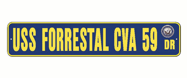 USS FORRESTAL CVA 59 Aluminum Street Sign Navy Blue / Yellow 6" x 30" Military USN SS002