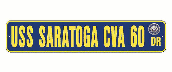 USS SARATOGA CV 60 Aluminum Street Sign Navy Blue / Yellow 6" x 30" Military USN SS002