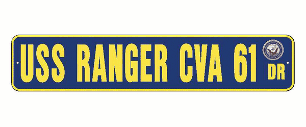 USS RANGER CVA 61 Aluminum Street Sign Navy Blue / Yellow 6" x 30" Military USN SS002