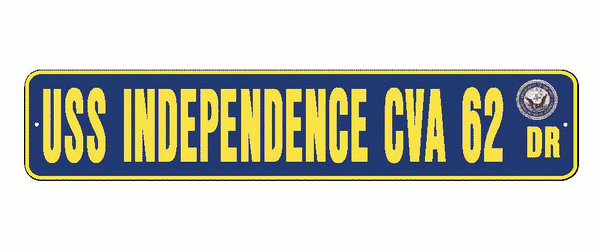 USS INDEPENDENCE CVA 62 Aluminum Street Sign Navy Blue / Yellow 6" x 30" Military USN SS002