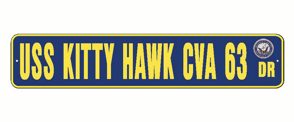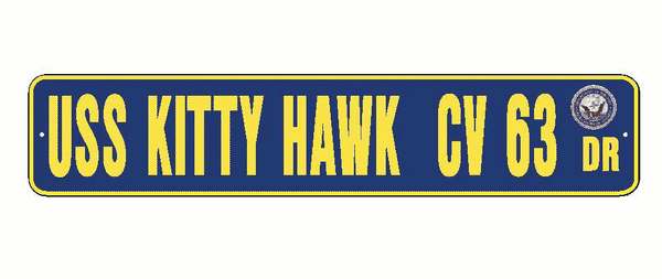 USS KITTY HAWK CV 63 Aluminum Street Sign Navy Blue / Yellow 6" x 30" Military USN SS002