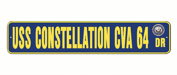 USS CONSTELLATION CVA 64 Aluminum Street Sign Navy Blue / Yellow 6" x 30" Military USN SS002