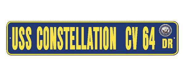 USS CONSTELLATION CV 64 Aluminum Street Sign Navy Blue / Yellow 6" x 30" Military USN SS002