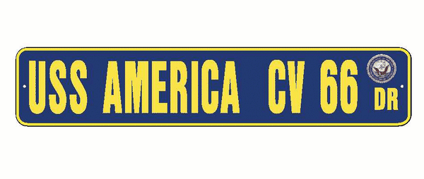 USS AMERICA CVA 66 Aluminum Street Sign Navy Blue / Yellow 6" x 30" Military USN SS002