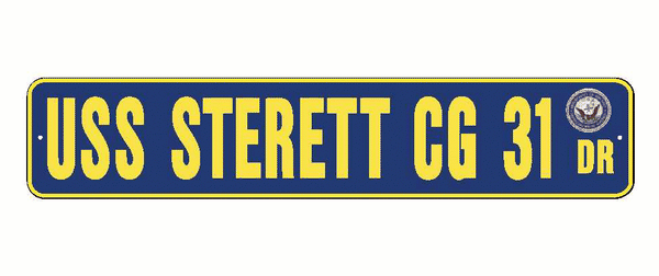 Vendor: American Military Graphics USS STERETT CG 31 Aluminum Street Sign Navy Blue / Yellow 6" x 30" Military USN SS002 Sale price $27.99Regular price $29.99