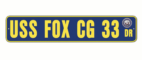 Vendor: American Military Graphics USS FOX CG 33 Aluminum Street Sign Navy Blue / Yellow 6" x 30" Military USN SS002 Sale price $27.99Regular price $29.99