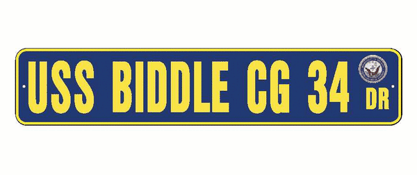 Vendor: American Military Graphics USS BIDDLE CG 34 Aluminum Street Sign Navy Blue / Yellow 6" x 30" Military USN SS002 Sale price $27.99Regular price $29.99