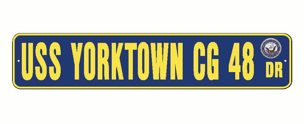 Vendor: American Military Graphics USS YORKTOWN CG 48 Aluminum Street Sign Navy Blue / Yellow 6" x 30" Military USN SS002 Sale price $27.99Regular price $29.99