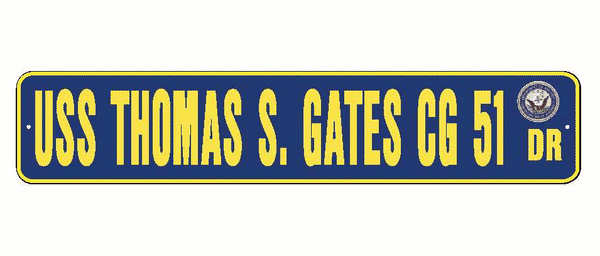 Vendor: American Military Graphics USS THOMAS S GATES CG 51 Aluminum Street Sign Navy Blue / Yellow 6" x 30" Military USN SS002 Sale price $27.99Regular price $29.99