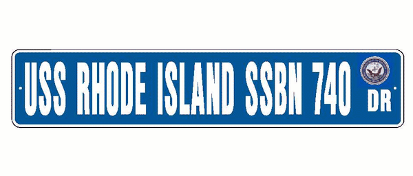Vendor: American Military Graphics USS RHODE ISLAND SSBN 740 Aluminum Street Sign Blue / White 6" x 30" Military USN SS001 Sale price $27.99Regular price $29.99