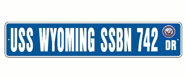 Vendor: American Military Graphics USS WYOMING SSBN 742 Aluminum Street Sign Blue / White 6" x 30" Military USN SS001 Sale price $27.99Regular price $29.99