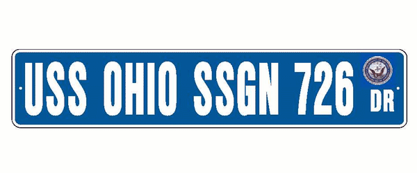 Vendor: American Military Graphics USS OHIO SSGN 726 Aluminum Street Sign Blue / White 6" x 30" Military USN SS001 Sale price $27.99Regular price $29.99