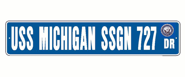 Vendor: American Military Graphics USS MICHIGAN SSGN 727 Aluminum Street Sign Blue / White 6" x 30" Military USN SS001 Sale price $27.99Regular price $29.99