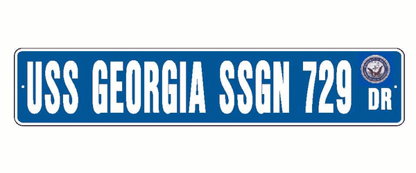 Vendor: American Military Graphics USS GEORGIA SSGN 729 Aluminum Street Sign Blue / White 6" x 30" Military USN SS001 Sale price $27.99Regular price $29.99