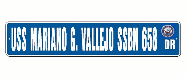 USS MARIANO G. VALLEJO SSBN 658 Aluminum Street Sign Blue / White 6" x 30" Military USN SS001