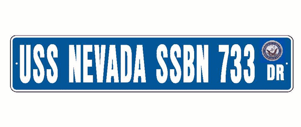 USS NEVADA SSBN 733 Aluminum Street Sign Blue / White 6" x 30" Military USN SS001