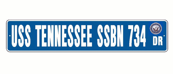 USS TENNESSEE SSBN 734 Aluminum Street Sign Blue / White 6" x 30" Military USN SS001