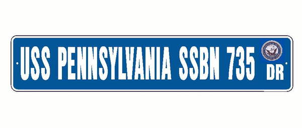 USS PENNSYLVANIA SSBN 735 Aluminum Street Sign Blue / White 6" x 30" Military USN SS001