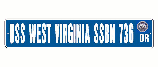 USS WEST VIRGINIA SSBN 736 Aluminum Street Sign Blue / White 6" x 30" Military USN SS001