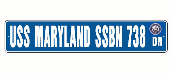 USS MARYLAND SSBN 738 Aluminum Street Sign Blue / White 6" x 30" Military USN SS001