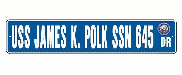USS JAMSE K. POLK SSN 645 Aluminum Street Sign Blue / White 6" x 30" Military USN SS001