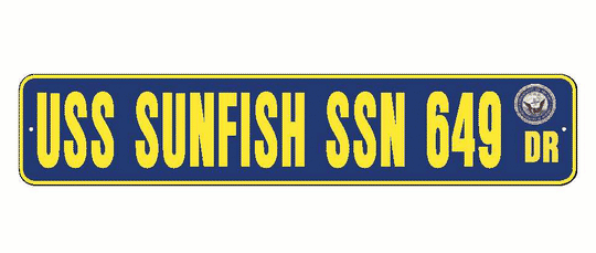 USS SUNFISH SSN 649 Aluminum Street Sign Navy Blue / Yellow 6" x 30" Military USN SS002