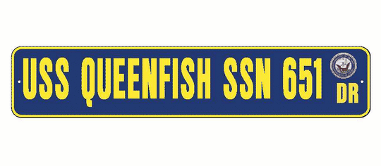USS QUEENFISH SSN 651 Aluminum Street Sign Navy Blue / Yellow 6" x 30" Military USN SS002