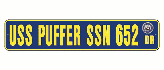 USS PUFFER SSN 652 Aluminum Street Sign Navy Blue / Yellow 6" x 30" Military USN SS002