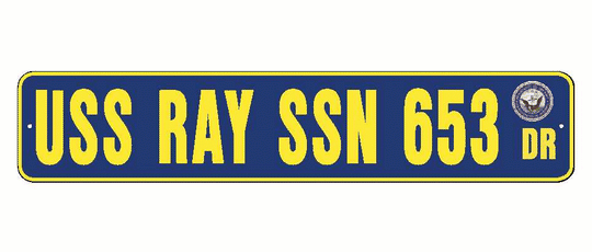 USS RAY SSN 653 Aluminum Street Sign Navy Blue / Yellow 6" x 30" Military USN SS002