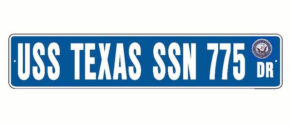 USS TEXAS SSN 775 Aluminum Street Sign Blue / White 6" x 30" Military USN SS001