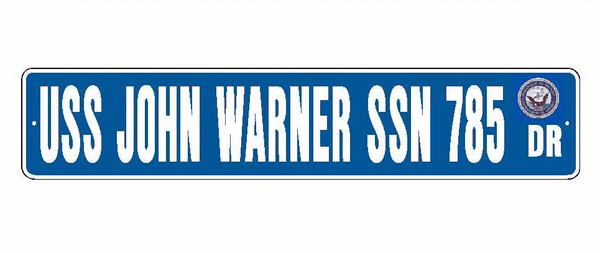 USS JOHN WARNER SSN 785 Aluminum Street Sign Blue / White 6" x 30" Military USN SS001