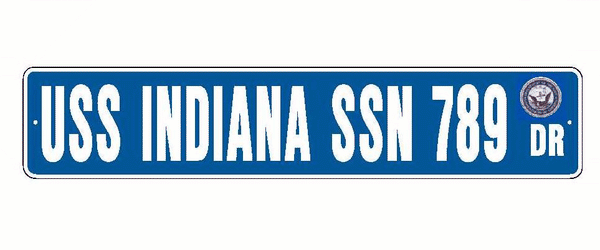 USS INDIANA SSN 789 Aluminum Street Sign Blue / White 6" x 30" Military USN SS001