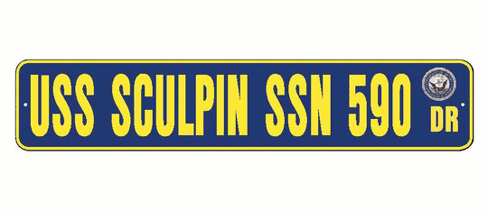 USS SCULPIN SSN 590 Aluminum Street Sign Navy Blue / Yellow 6" x 30" Military USN SS002