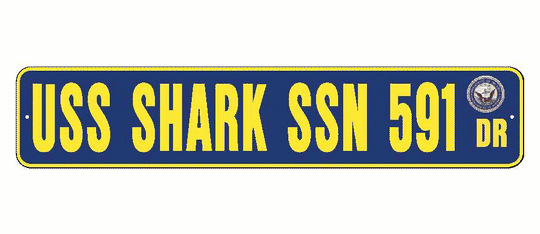USS SHARK SSN 591 Aluminum Street Sign Navy Blue / Yellow 6" x 30" Military USN SS002