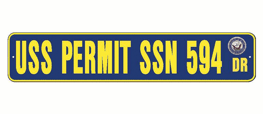 USS PERMIT SSN 594 Aluminum Street Sign Navy Blue / Yellow 6" x 30" Military USN SS002