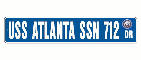 USS ATLANTA SSN 712 Aluminum Street Sign Blue / White 6" x 30" Military USN SS001
