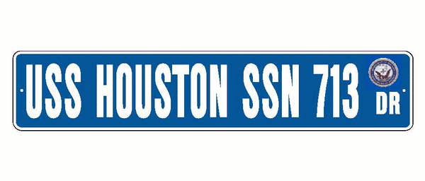 USS HOUSTON SSN 713 Aluminum Street Sign Blue / White 6" x 30" Military USN SS001