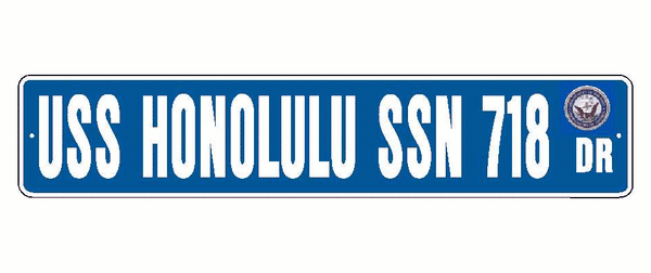 USS HONOLULU SSN 718 Aluminum Street Sign Blue / White 6" x 30" Military USN SS001