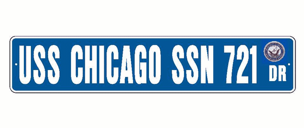 USS CHICAGO SSN 721 Aluminum Street Sign Blue / White 6" x 30" Military USN SS001