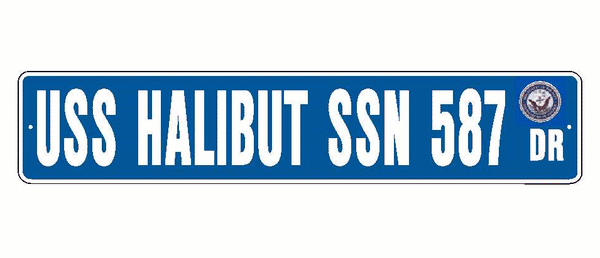 USS HALIBUT SSN 587 Aluminum Street Sign Blue / White 6" x 30" Military USN SS001