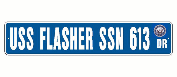 USS FLASHER SSN 613 Aluminum Street Sign Blue / White 6" x 30" Military USN SS001